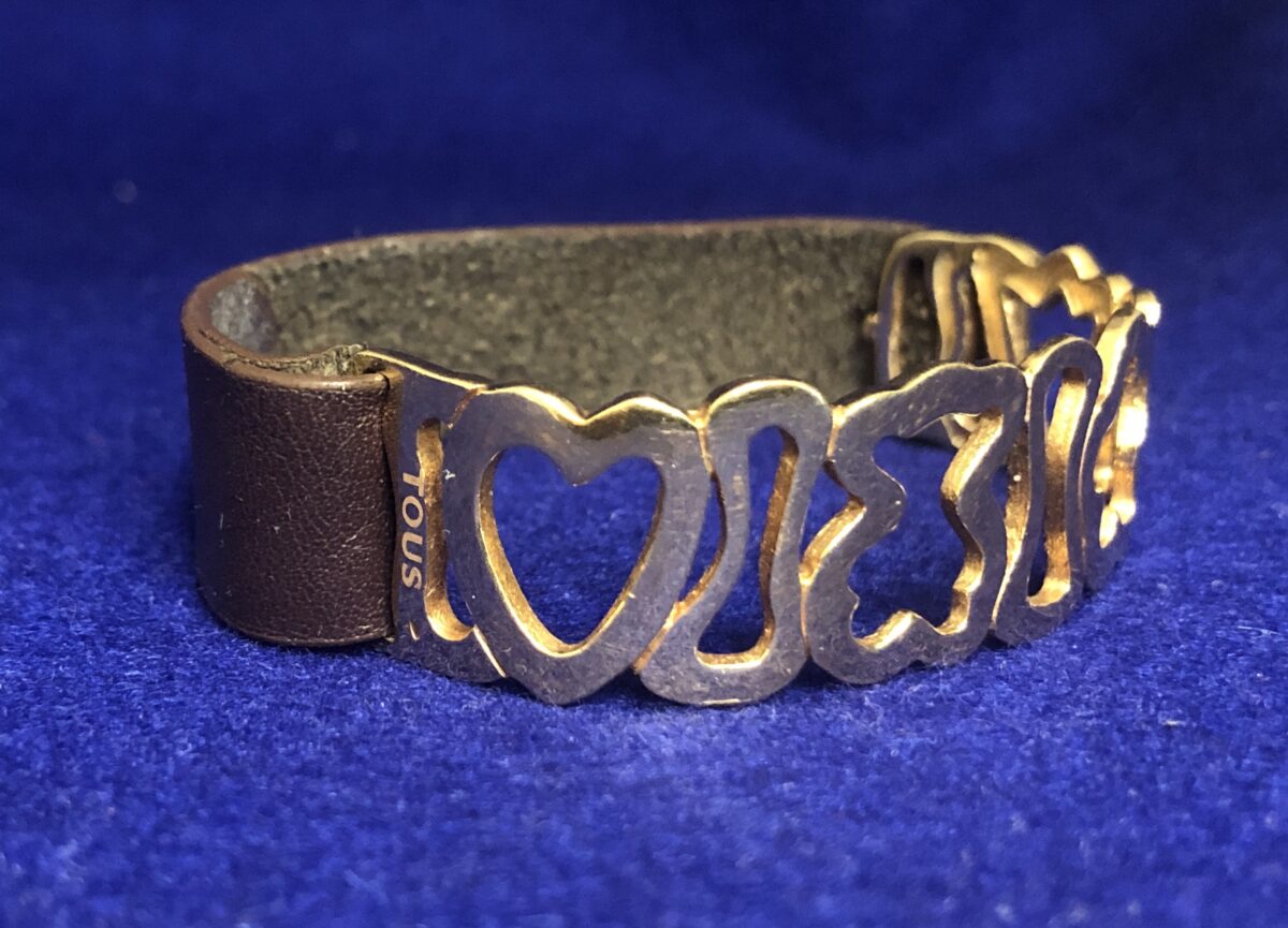 Brazalete TOUS con correa de piel genuina en oro amarillo de ley 18 kts.