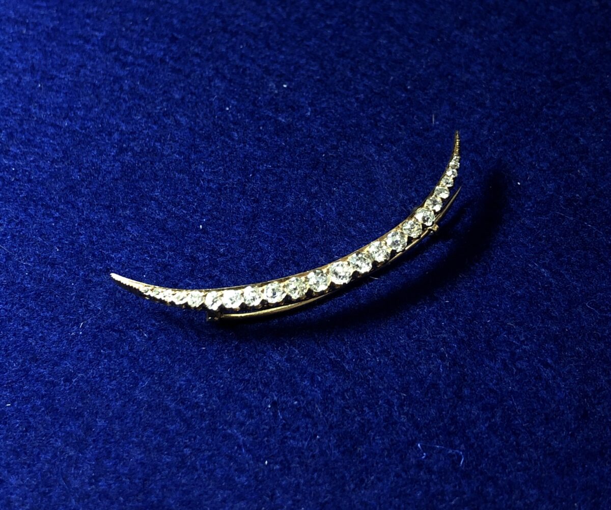 Broche en forma de media luna con aprox. 1’60 cts. de brillantes en oro amarillo de ley 18 kts.