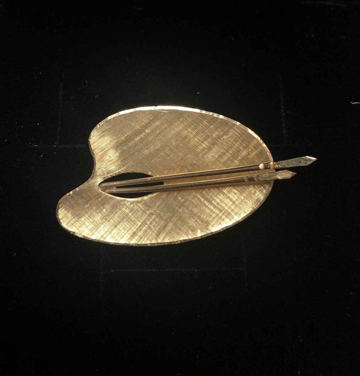 Broche en forma de paleta de pintor con pinceles, realizado en oro amarillo de ley 18 kts.