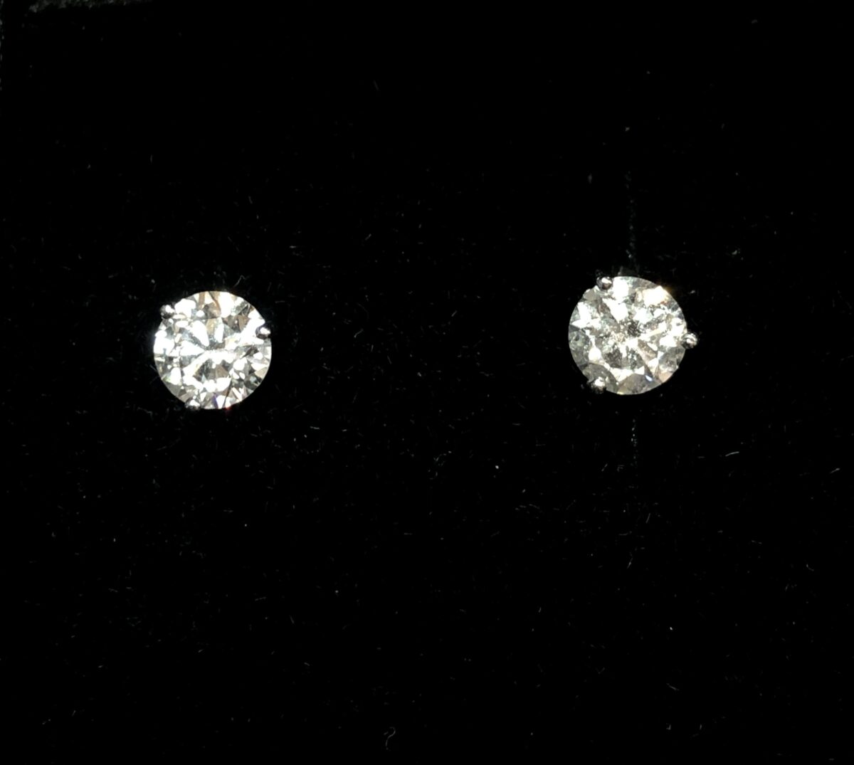 Dormilonas con pareja de diamantes montados en 3 garras, de 1’48 cts y 1’49 cts respectivamente (3 cts en total), color H-VS1, realizadas en oro blanco de ley 18 kts.