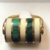 Juego de pendientes y sortija con circonitas, zafiros, rubíes y esmeraldas, en oro amarillo de ley 18 kts.