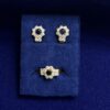 JUEGO DE PENDIENTES Y SORTIJA CON TOPACIOS Y ORLA DE CIRCONITAS. MONTADO EN ORO BLANCO DE LEY 18KTS.