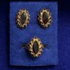 JUEGO DE PENDIENTES Y SORTIJA EN FORMA DE CUADRADOS UNA MITAD LISA Y OTRA MITAD EN MATE CON BRILLANTES. MONTADOS EN ORO BLANCO DE LEY 18KTS.