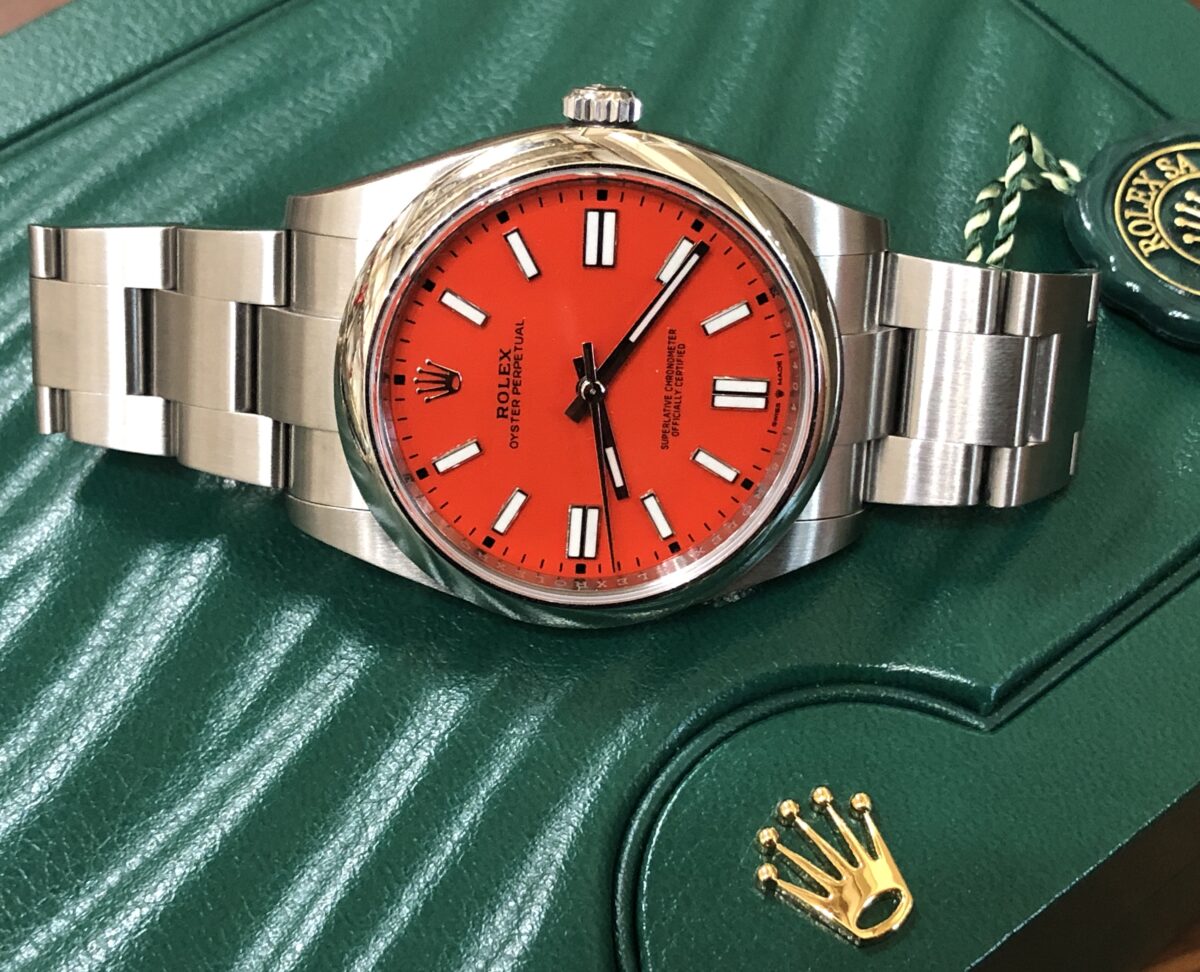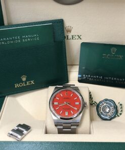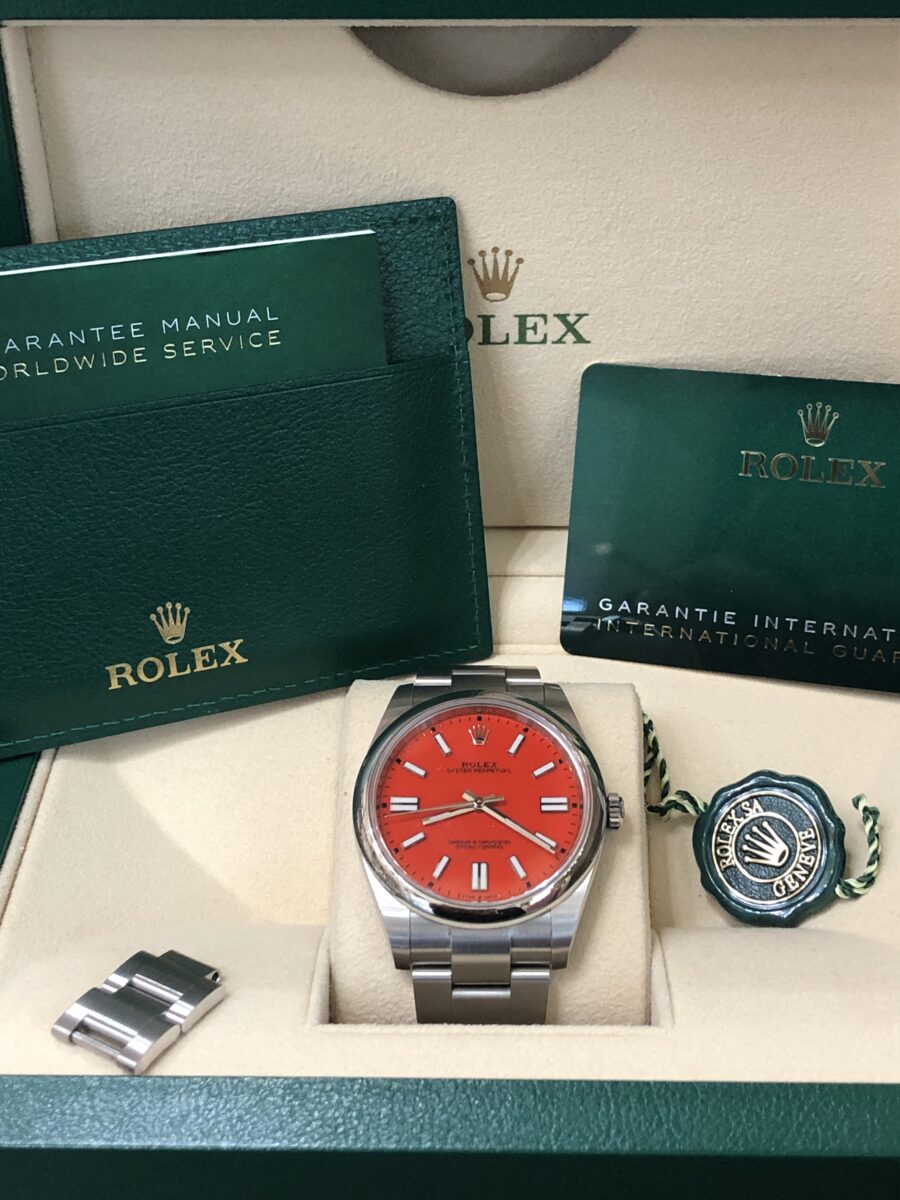 Rolex Oyster Perpetual, modelo 124300, año: 2021, esfera roja original 41 mm, automático, acero.