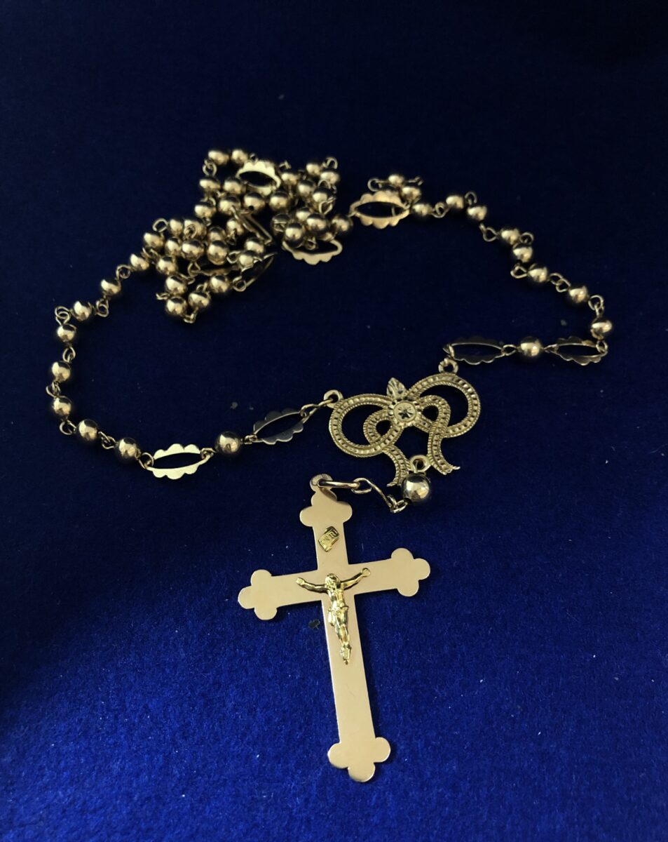 Rosario de 46 cm de largo en oro amarillo de ley 18 kts.