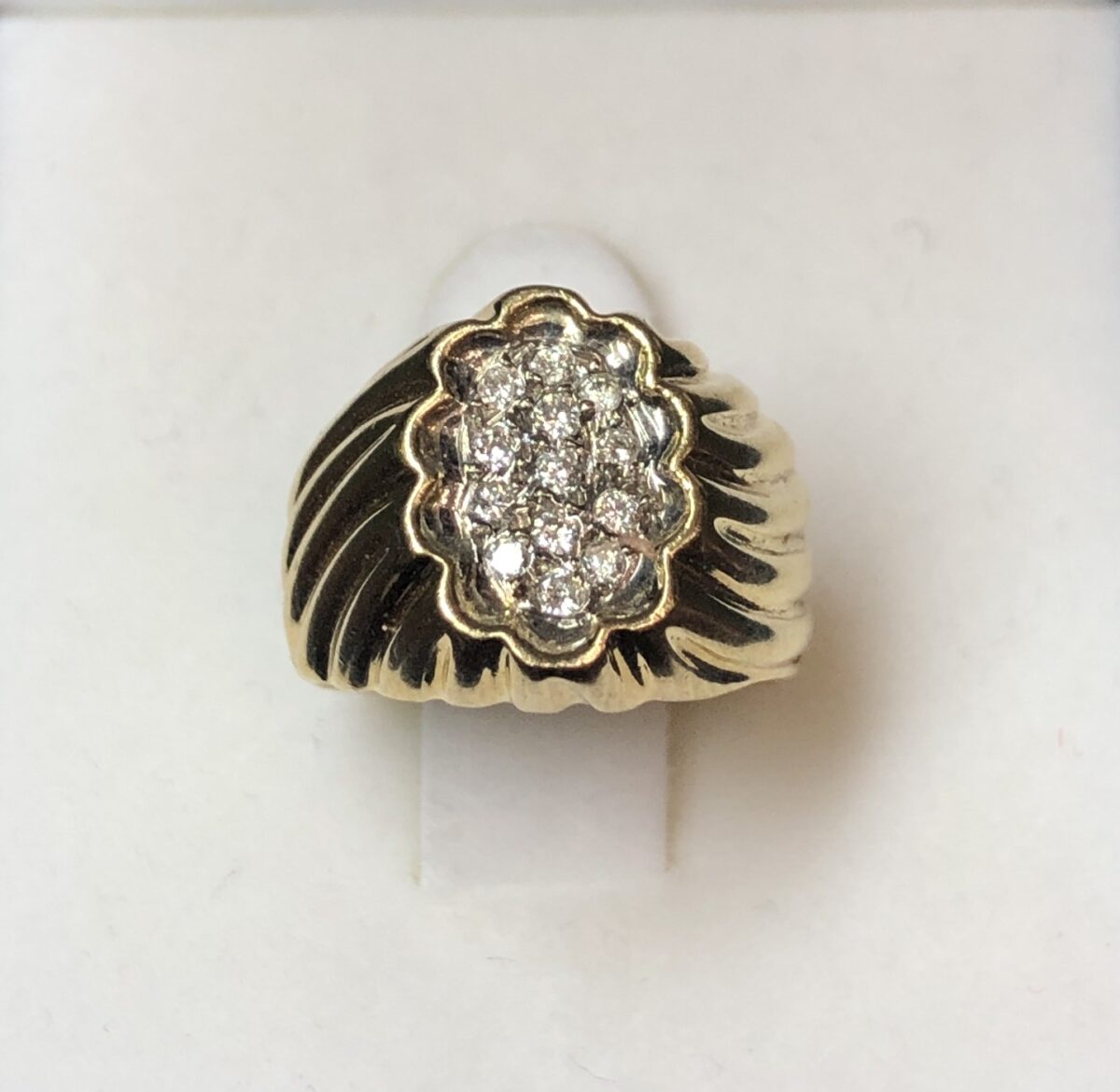 Sello gallonado en forma de flor cuajada de 0'26 cts de brillantes realizado en oro amarillo de ley 18 kts