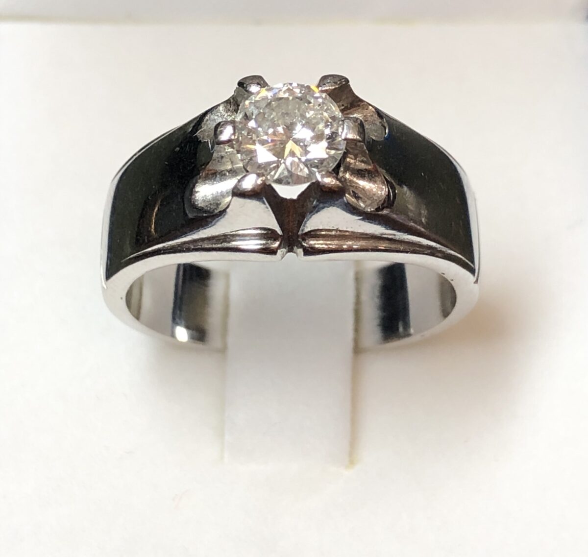Solitario de caballero con brillante de 0’67 cts color H-VS1 montado en oro blanco de ley 18 kts