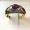 Sortija ancha con motivos florales y 3 brillantes de 0’25 cts en total, en oro blanco y amarillo de ley 18 kts.