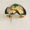 Sortija con aguamarina central de 1’45 cts y dos brillantes laterales de 0,0’8 cts en total, montados en oro blanco de ley 18 kts.