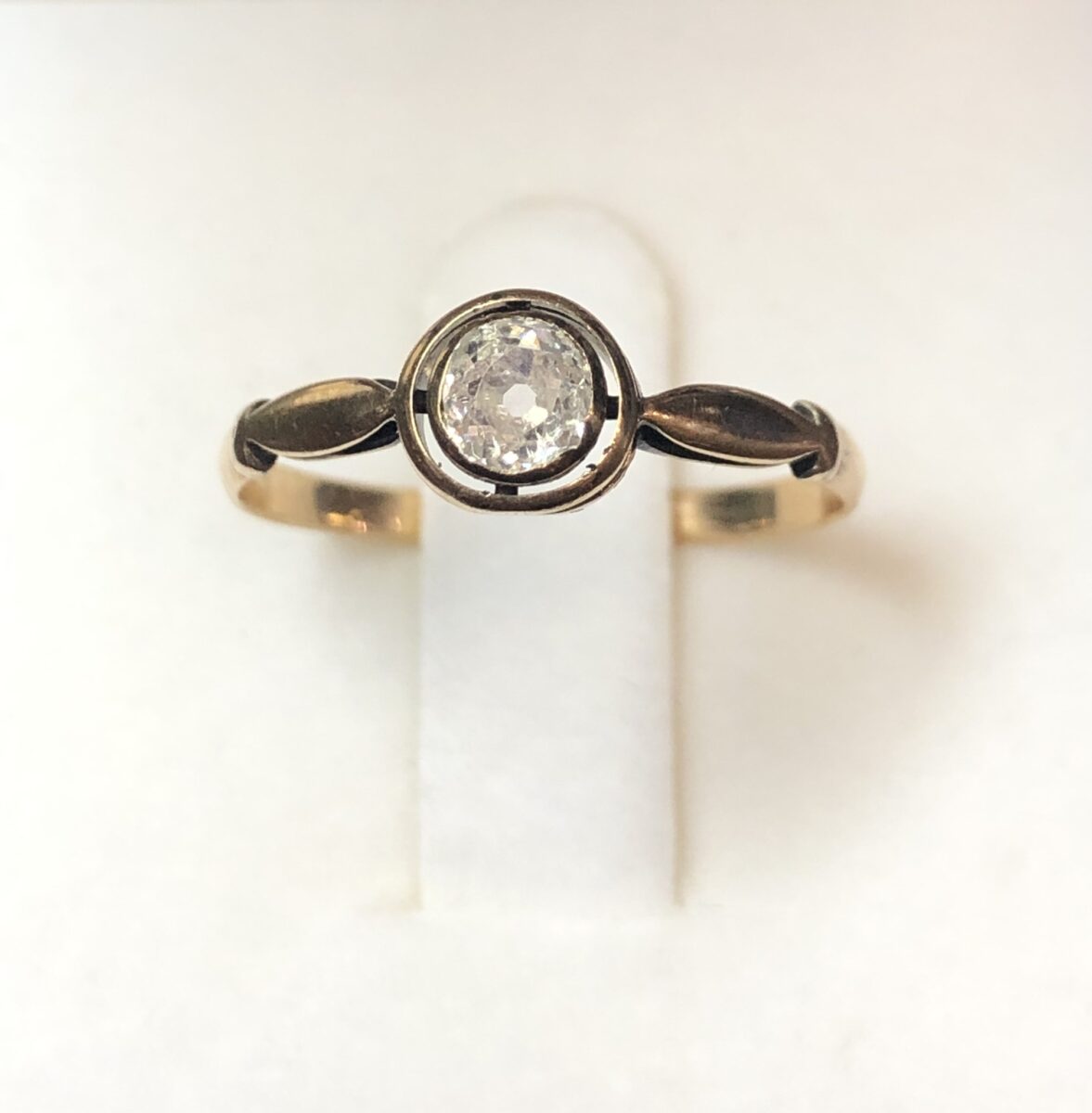 Sortija con diamante en chatón talla rosa de 0’25 cts realizado en oro amarillo de ley 18 kts.