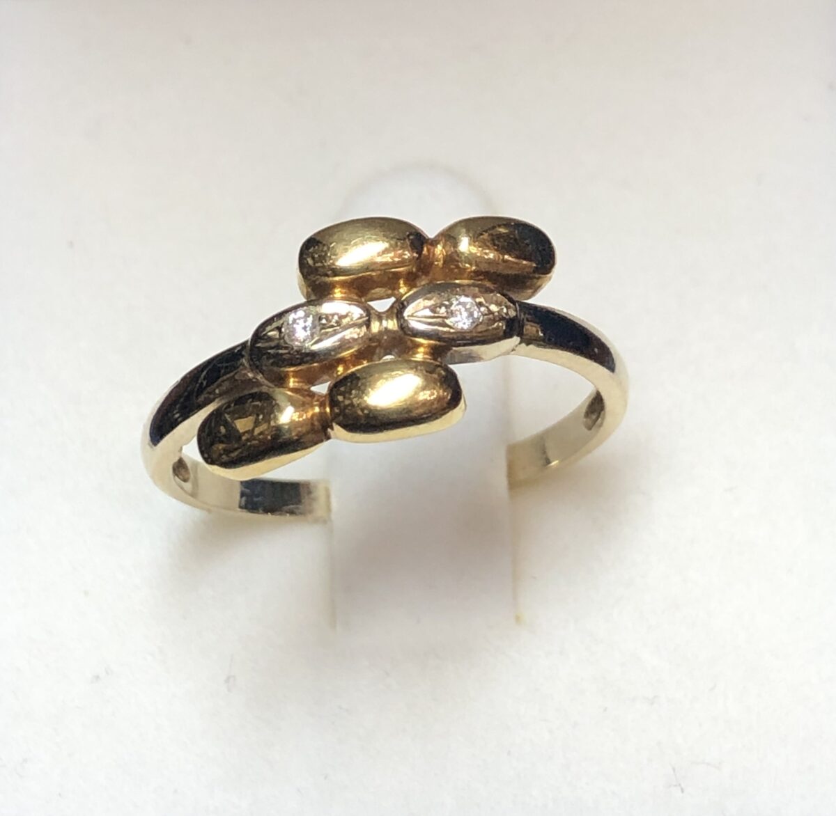 Sortija con diseño tipo panthère con 2 brillantitos de 0’05 cts en total en oro blanco y amarillo de ley 18 kts.
