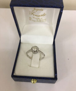 Sortija de pedida o compromiso 0,30 cts. Montada en oro blanco de ley 18kts.