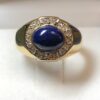 Sortija en forma de flor con auténtica esmeralda colombiana y 0’55 cts de brillantes en oro blanco de ley 18 kts.