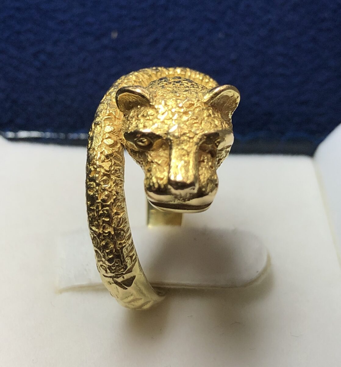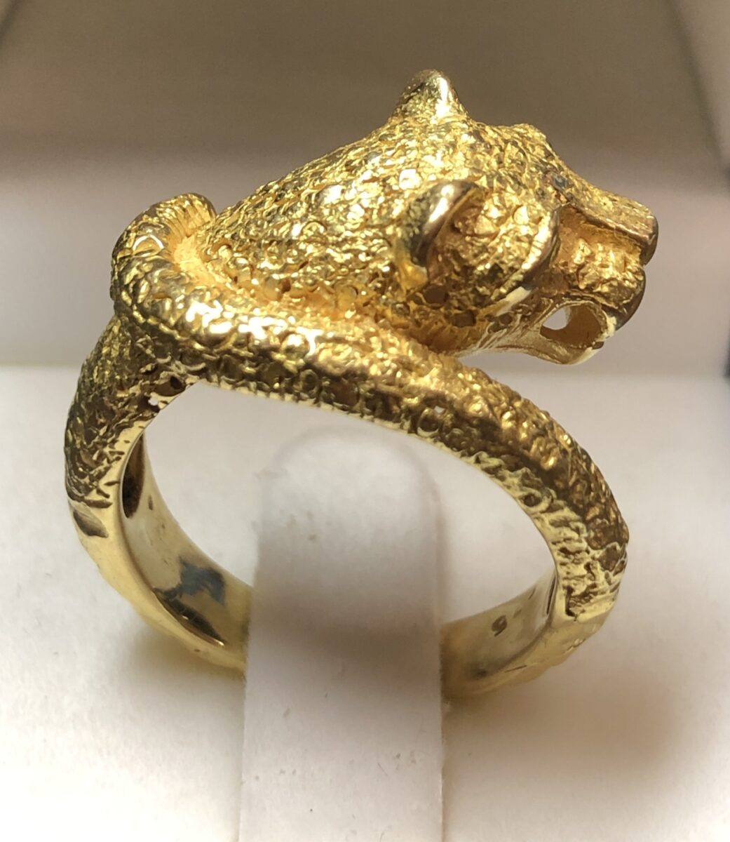 Sortija en forma de pantera en oro amarillo texturizado, de ley 18 kts.