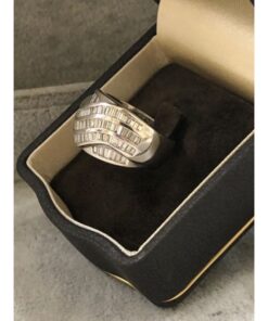 Sortija  con frente a modo de turbante con  diamantes talla baguette  de 2 quilates en total aproximadamente, montada en oro blanco de ley 18 kilates