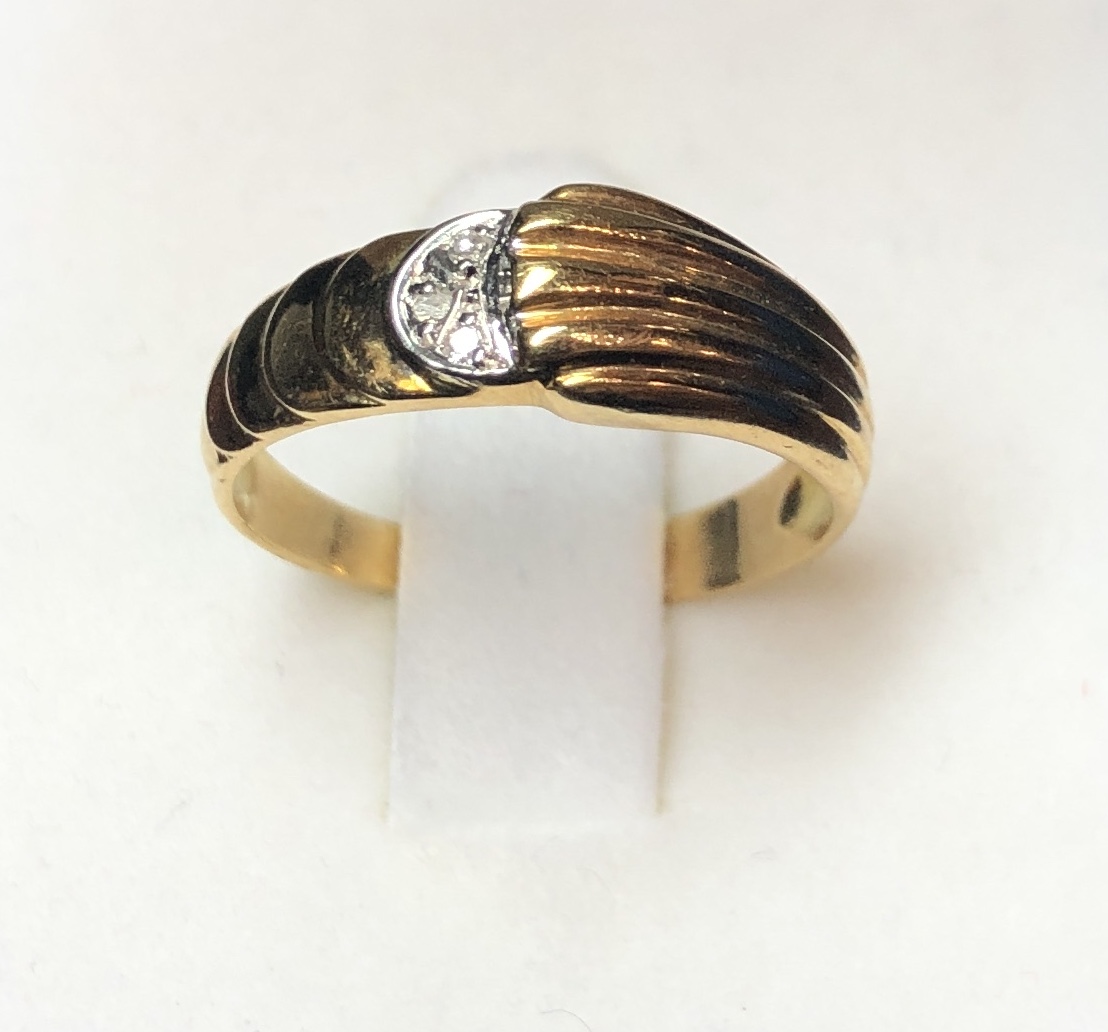 Sortija vintage gallonada (años 80) con medias lunas y brillantitos realizada en oro amarillo de ley 18 kts.